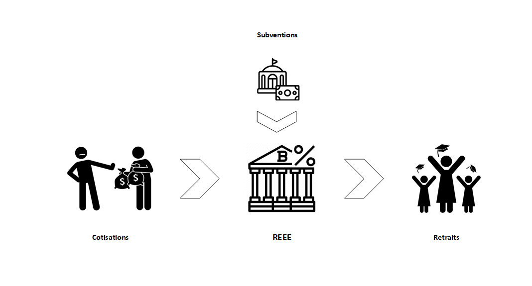 - Le paiement d'aide à l'éducation (PAE), qui comprend les incitations gouvernementales ainsi que les revenus des investissements et des incitations